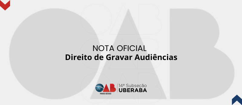 A OAB Uberaba LEMBRA os(as) advogados(as) e ALERTA os órgãos responsáveis pela administração da justiça que é DIREITO da parte e de seus procuradores GRAVAR as audiências, independentemente de autorização judicial, conforme disposto no art. 367, §5º e §6º do Código de Processo Civil (Lei nº 13.105/2015), aplicado subsidiariamente ao Processo Penal conforme entendimento consolidado do STF e do STJ.